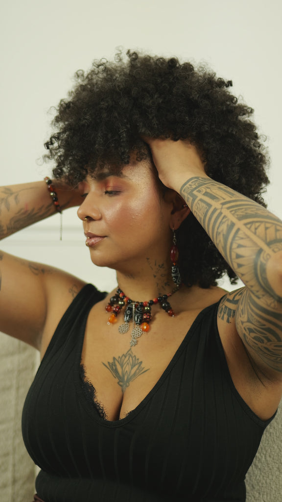 Inspiré des peaux tatouées et marquées par l’histoire, ce collier célèbre les traces choisies ou héritées.